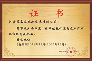 认定为市级龙头企业